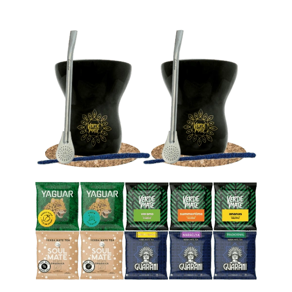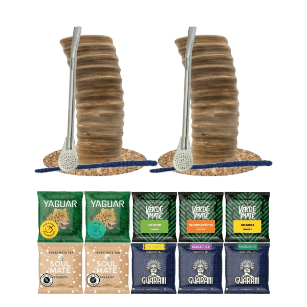 Yerba Mate Set für zwei Personen Bombilla Mate Becher 10x50g