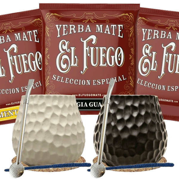 Mate-Tee-Set für Zwei: Proben El Fuego 3x50g + 2x Kalebasse + 2x Bombilla
