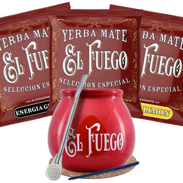 Yerba Mate El Fuego Calabash Bombilla Starter-Set