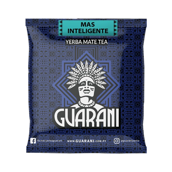 - Guarani Mas Inteligente - intensive Mate-Tee-Mischung mit Guarana, Ginseng und Ginkgo Biloba. Der Zitrus-Kräuter-Geschmack und der natürliche Koffeingehalt machen ihn zu einer guten Wahl für Momente, die Konzentration und Energie erfordern.