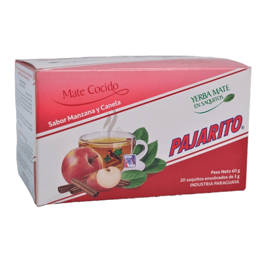 - Bekannter Mate Tee aus Paraguay in Teebeuteln Pajarito. Jeder Beutel enthält 3 g Mate Tee mit Apfel-Zimt-Geschmack.