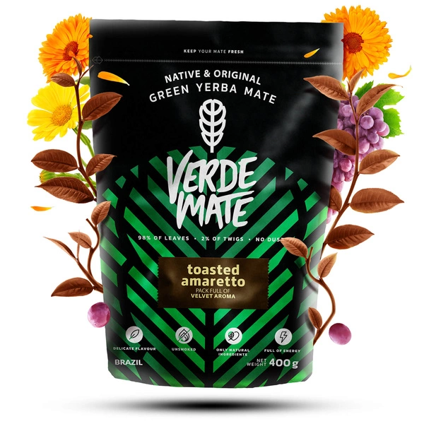 - Verde Mate Amaretto Tostada ist eine geröstete Mate Tee mit tiefem, dessertartigem Geschmack nach Mandeln und süßen Zutaten. Sein vom italienischen Amaretto inspiriertes Aroma verleiht ihm einen einzigartigen und eleganten Charakter.