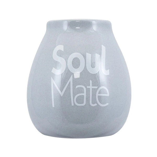 Grauer Mate Becher mit Logo der Marke Soul Mate
