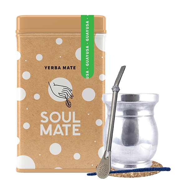 Set Yerbera Yerba Mate Soul Mate Guayusa 0.5kg Palo Santo