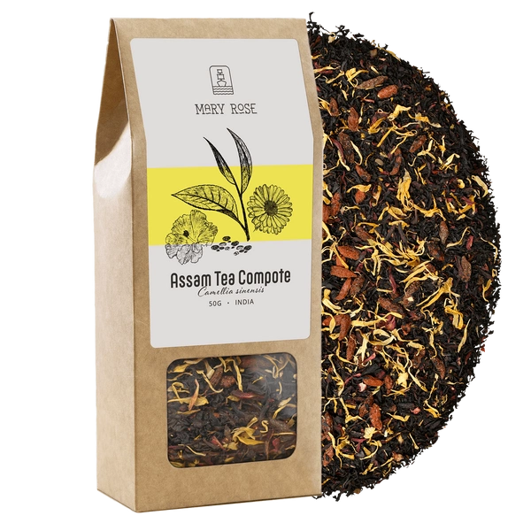 • Mary Rose Assam Compote ist eine ausgezeichnete Mischung von dem schwarzen Tee assam mit vielen wertvollen Zusätzen natürlicher Herkunft. Unter ihnen steht im Vordergrund Hibiskus, der dem Ganzen einen säuerlichen Charakter gibt.