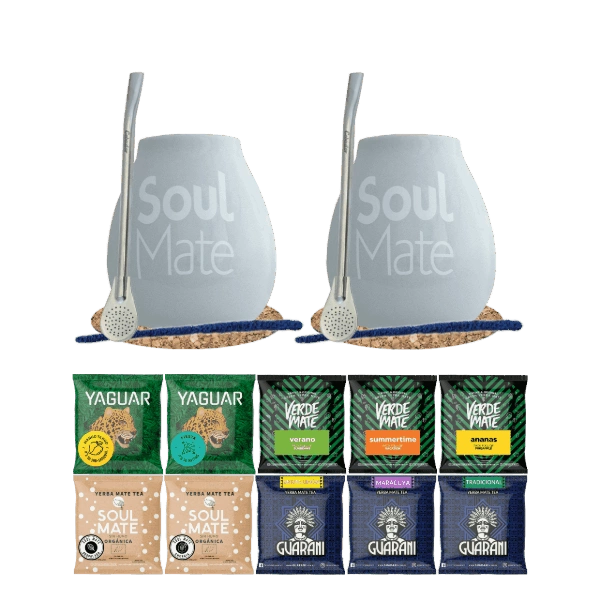 Bitte beachten Sie, dass die Namen der einzelnen Geschmacksrichtungen der Mate-Tee-Proben auf dem Rückenetikett direkt neben den Angaben zu den Inhaltsstoffen zu finden sind.