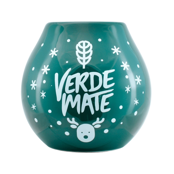 Mate Becher Verde Mate Winter Time - ist ein praktisches Gefäß zum Trinken des Mate Tees, aus hochwertiger Keramik in einer speziellen limitierten Sonderedition, die für die Wintersaison vorbereitet wurde. Becher ist verziert mit dem Logo der Marke Verde Mate, und einem Weihnachtsmotiv. Das Produkt zeichnet sich durch eine hohe Qualität und eine Form aus, die von traditionellen südamerikanischen Kalebassen inspiriert ist. Das Gefäß ist glasiert auf beiden Seiten, einfach zu reinigen und beständig gegen verschiedene Arten von mechanischen Beschädigungen.