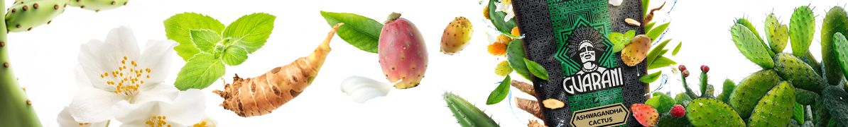 - Guarani Ashwagandha Cactus ist eine Mate Tee aus Paraguay mit dem Zusatz von Ashwagandha, Ginseng, Feigenkaktusblüten und Jasmin. Ein intensiver Geschmack, natürliches Koffein und eine exotische Mischung für Energie und Momente der Entspannung.