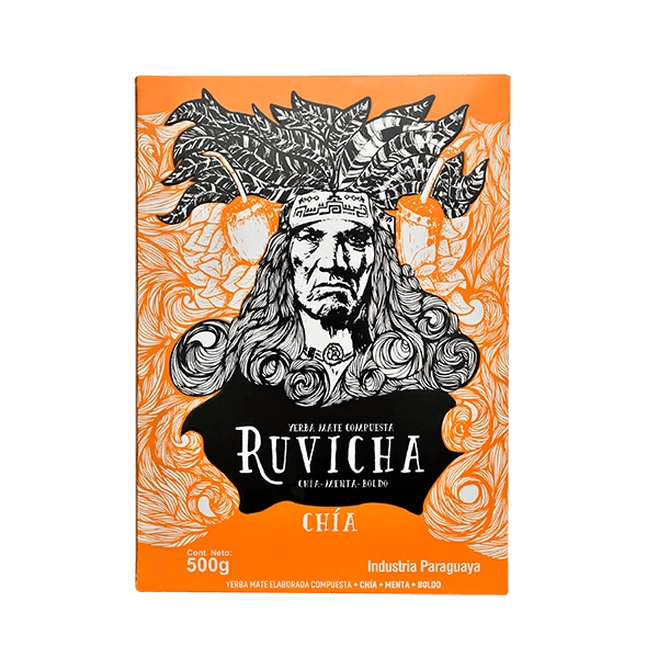Ruvicha Chia - klassischer, paraguayischer Mate Tee, in einer modernen Variante. Die Marke Ruvicha entstand vor ein paar Jahren, in 2016, und sie hat schon die Herzen sowohl einheimischer, als auch der Welt-Fans des Mate Tees erobert. Rauchiger, geräucherter Mate Tee verbindet sich perfekt in dieser Mischung mit Chiasamen, die reich an Vitaminen und Mineralien sind, und Kräuterzusätzen: Minze und Boldo. Alle Zutaten bilden eine angenehme im Geschmack und Aroma Komposition, die sehr erfrischend ist. Sie wird perfekt in traditioneller, warmer Variante und in kalter Form von Tereré sein.