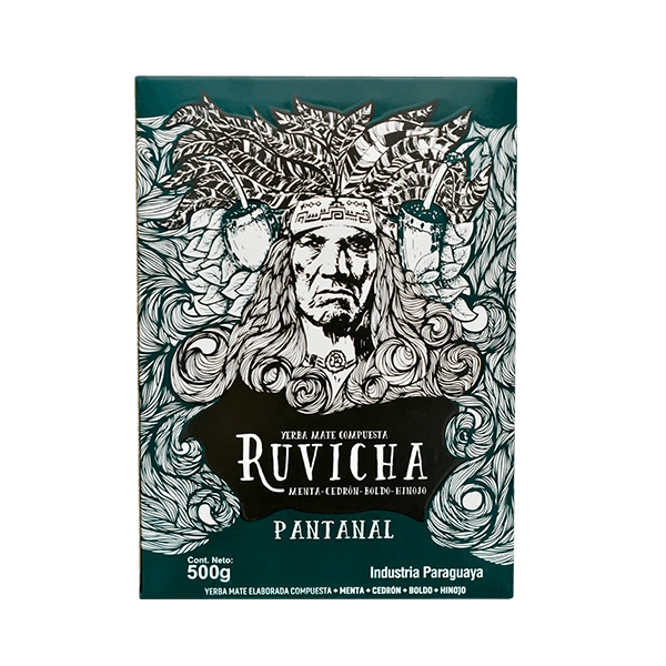 Ruvicha Pantanal - klassischer, paraguayischer Mate Tee, in einer modernen Variante. Die Marke Ruvicha entstand vor ein paar Jahren, in 2016, und sie hat schon die Herzen sowohl einheimischer, als auch der Welt-Fans des Mate Tees erobert. Rauchiger, geräucherter Mate Tee verbindet sich perfekt in dieser Mischung mit Kräuterzusätzen: erfrischender Minze, Boldo, milder Zitronenverbene und mildem Fenchel. Diese Komposition wird perfekt in warmer und kalter Form - als eiskalte Variante Tereré sein.